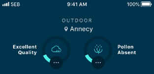 Aplikacija vam za odabranu lokaciju pruža podatke o kvaliteti zraka na otvorenom i peludu: prihvatite geolokaciju ili odaberite naziv grada u aplikaciji. - Podaci iz zatvorenog prostora: