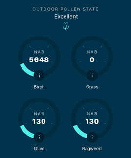 Kvaliteta zraka na otvorenom sadrži sve informacije o česticama i alergenima, plinu i VOC-u (hlapivim organskim spojevima) te peludi na otvorenom.