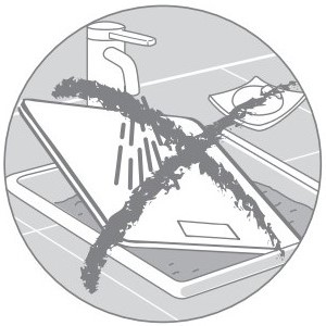 Nemojte upotrebljavati metalnu spužvu kao ni abrazivni prašak. Nikada uređaj ne uranjajte u vodu.